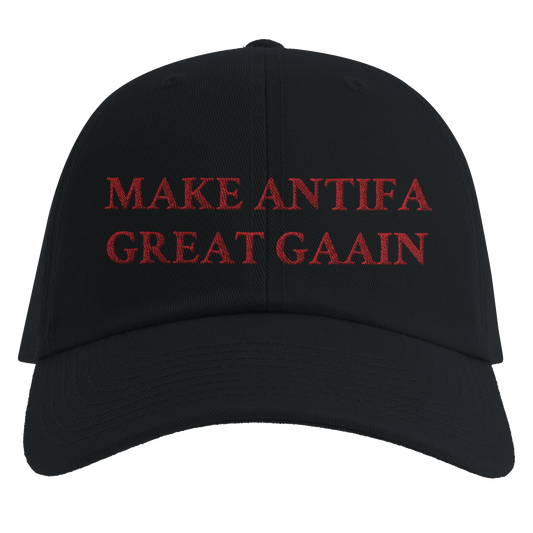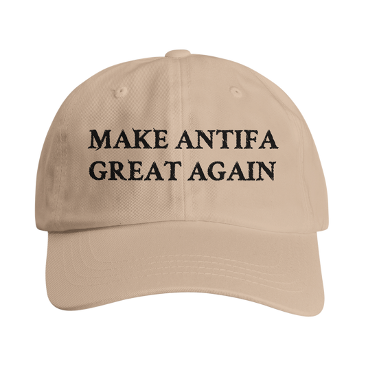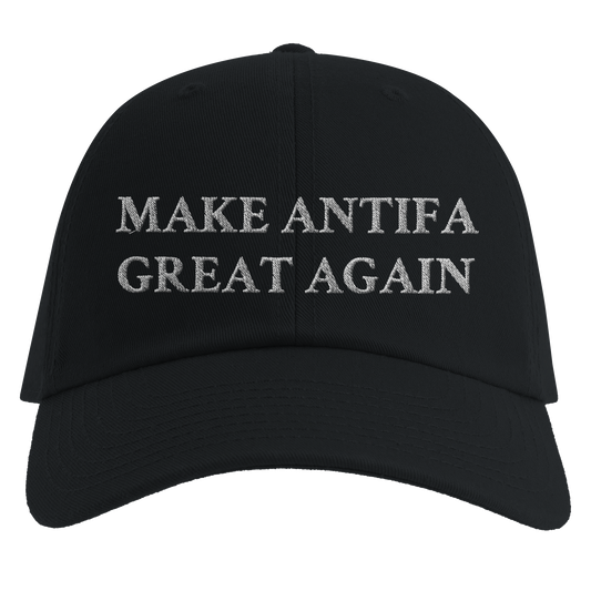 Adult Low-Profile Cotton Twill Dad Cap | Yupoong 6245CM "MAKE ANTIFA GREAT AGAIN" (black letters)