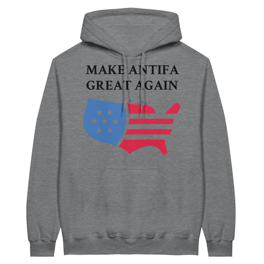 Midweight Fleece Adult Hoodie | Gildan SF500 "MAKE ANTIFA GREAT AGAIN" with Flag/Map merge graphic, black letters