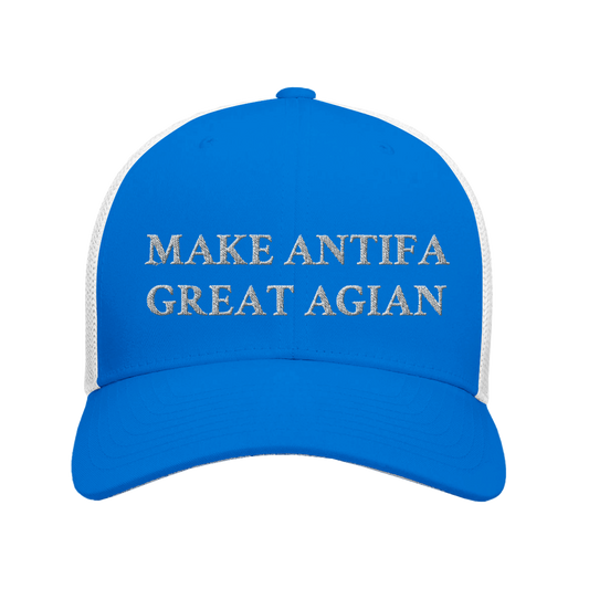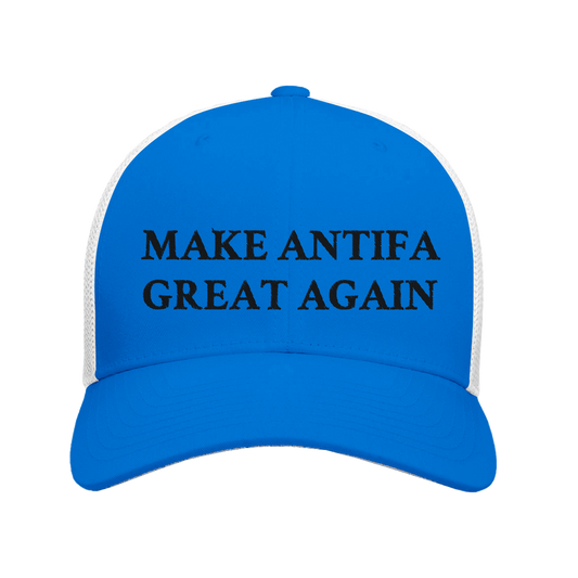 Adult 6-Panel Trucker Cap | Flexfit 6511 "MAKE ANTIFA GREAT AGAIN" (white letters)