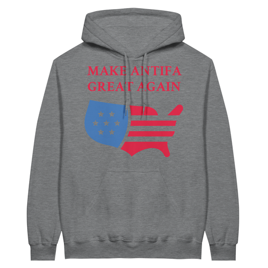 Midweight Fleece Adult Hoodie | Gildan SF500 "MAKE ANTIFA GREAT AGAIN" with Flag/Map merge graphic (red letters)